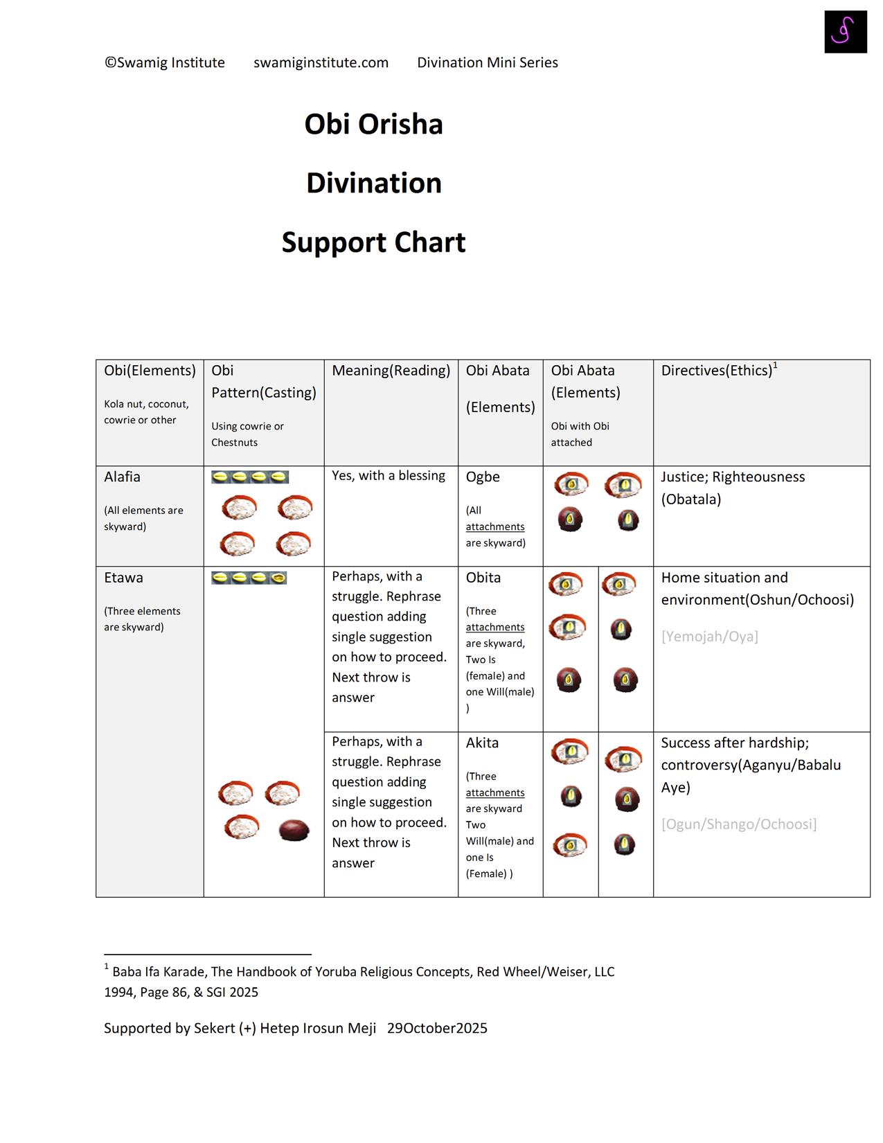 | Obi Orisha Charts | Support aids for independent study | Obi Orisha Chart1 Chart2 |